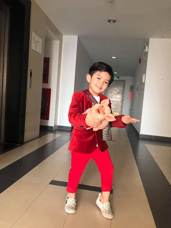 Bé Kubi năm nay được mẹ diện đồ đỏ đón năm mới rất thích thú. Thời trang sành điệu của Kubi tạo nên một phong cách mẫu nhí cho bé.