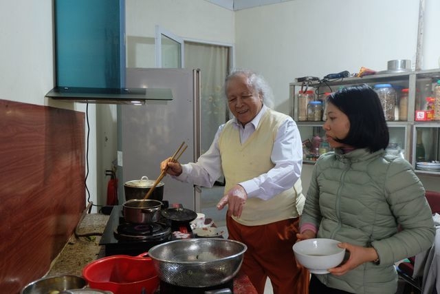 Dù đã 91 tuổi nhưng ông Trọng trông vẫn trẻ trung, phong độ. Lúc rảnh rỗi ông thường vào bếp giúp vợ nấu ăn, rửa bát.