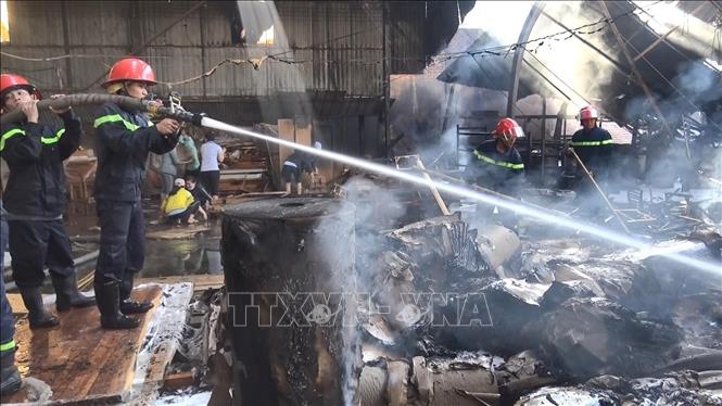 Sau khoảng 2 giờ nỗ lực khống chế, ngọn lửa đã cơ bản được dập tắt. Vụ cháy không gây thương vong về người nhưng đã làm một phần nhà xưởng của Công ty Trách nhiệm hữu hạn Huệ Minh Phát đổ sập; nhiều máy móc, gỗ thành phẩm bị thiêu rụi.