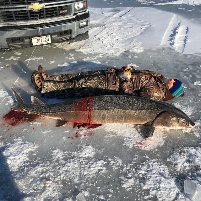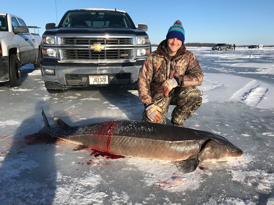 Ngư dân Jon Eiden cho biết ông đang đi bắt cá với cha hôm thứ hai thì nhìn thấy con cá tầm dài 2,2 mét trên hồ Winnebago.