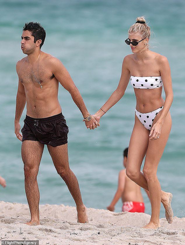 Devon Windsor và vị hôn phu Johnny Dex tay trong tay dạo bước trên biển Miami hồi tháng 11/2018.