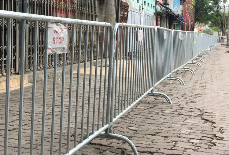 Vỉa hè quanh khách sạn Marriott được dựng hàng rào chắn. Ảnh: Phạm Dự.