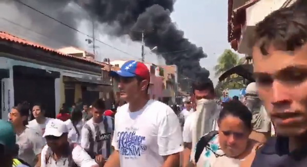 Xe bus chở quân Maduro bị đốt cháy, xuất hiện rừng người biểu tình. Những người biểu tình đeo mặt nạ đã cướp một chiếc xe buýt của chính phủ và đốt cháy nó khi cố gắng phá vỡ hàng rào lính.