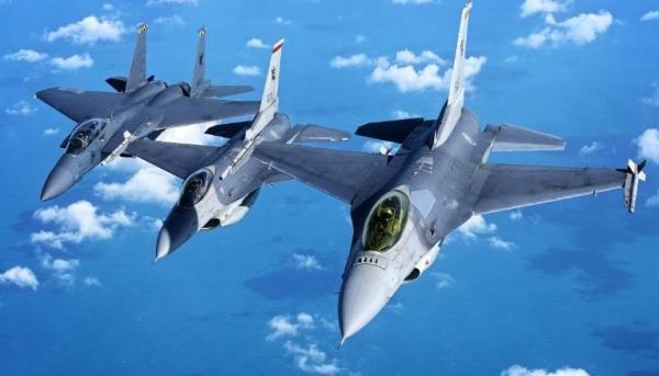 Nhóm bay gồm hai chiếc F-16 và một chiếc F-15 của không quân Singapore. Bộ trưởng Ng Eng Hen cho biết những chiếc F-16 đến năm 2030 sẽ trở nên lạc hậu. Ảnh: Getty.
