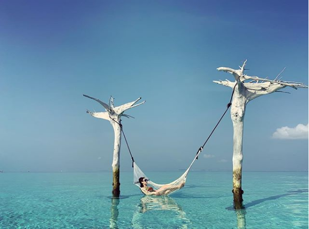 Huyền Baby đang có chuyến nghỉ dưỡng cùng gia đình tới vùng biển Maldives trong xanh - nơi dành cho những khách hàng thượng lưu vì chi phí đắt đỏ. Cô liên tục đăng tải những hình ảnh mặc áo tắm khoe thân hình đồng hồ cát dù đã trải qua 2 lần sinh nở.