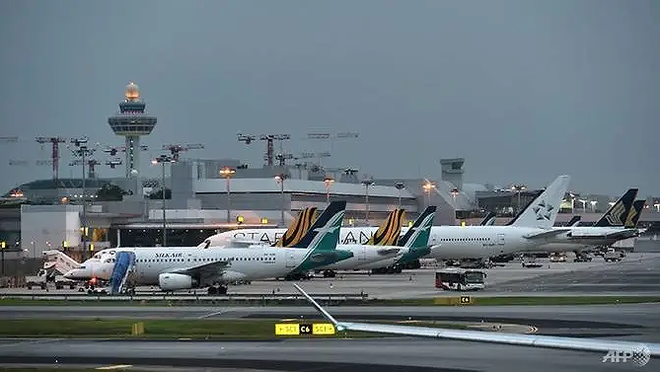 Máy bay thương mại trên đường băng sân bay quốc tế Changi (Singapore). Ảnh: AFP