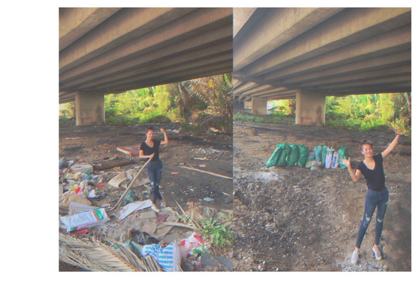 "Tôi chưa bao giờ tham gia bất cứ thử thách nào trên mạng xã hội, nhưng lần này phá lệ. Thấy mọi người chia sẻ ảnh tham gia thử thách dọn rác thấy ý nghĩa quá, tôi rủ em trai ra gầm cầu Phú Mỹ (quận 7, TP.HCM) gần nhà để dọn rác", Hương Ly - quán quân Vietnam Next Top Model - chia sẻ.
