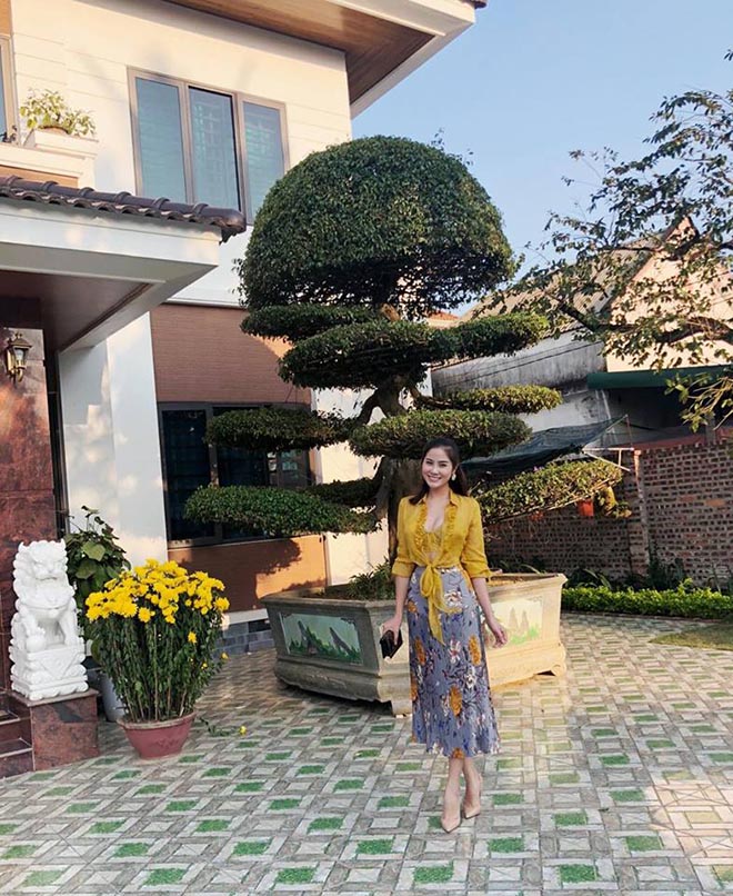 Người đẹp quê Nghệ An tiết lộ, căn biệt thự ở quê có kinh phí xây dựng là 7 tỷ đồng, rộng 700 m2, tọa lạc tại xã Nghi Liên, thành phố Vinh, Nghệ An.