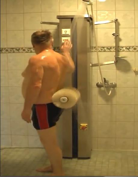 Một ông chú Phần Lan có một chiếc máy tắm tự động nó trông hao hao máy cân đo chiều cao chúng ta thường thấy., nhưng nhìn qua cứ tưởng đó là máy rửa xe, khi lại gần mới biết là cỗ máy tắm rửa tự động cũng hay, chỉ cần nhấn nút và lười vài phút.