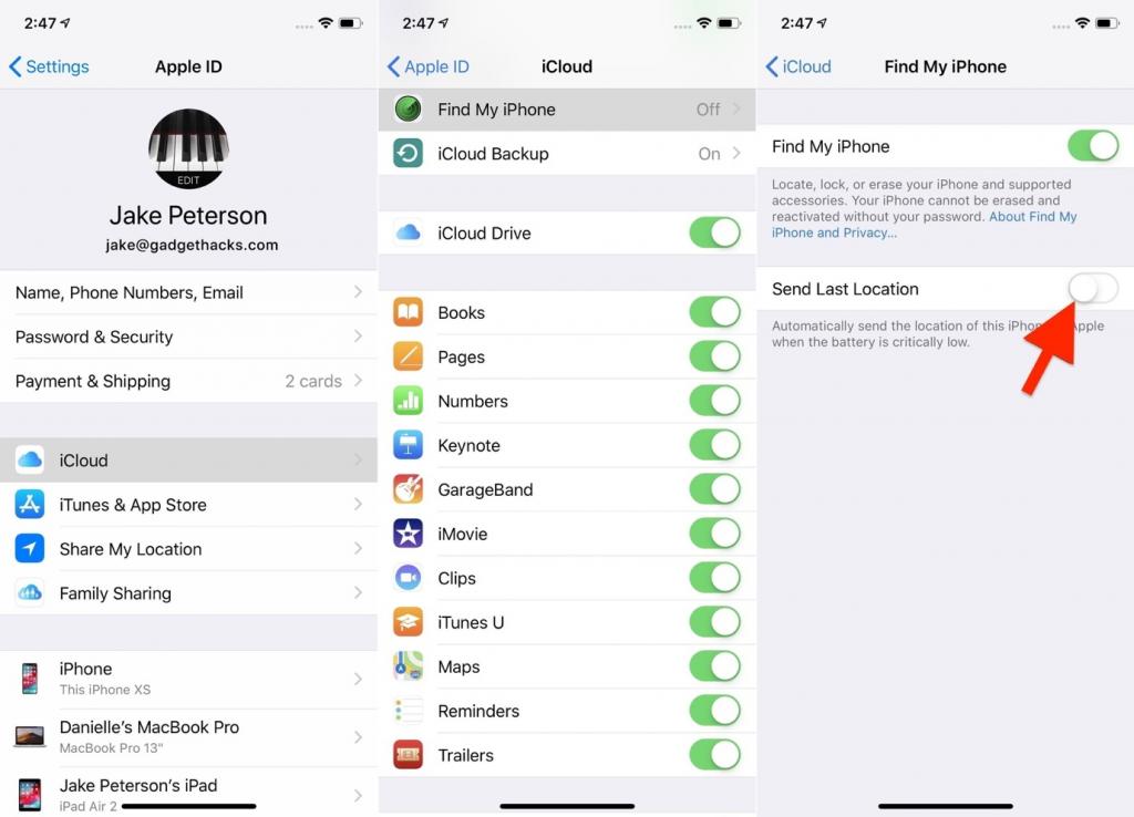 Sau khi bật Find iPhone, bạn hãy bật công tắc bên cạnh mục Send Last Location (Gửi vị trí sau cùng). Giờ đây, thiết bị của bạn đã được trang bị tính năng ghi nhận vị trí gần nhất trước khi nó hết pin. Dữ liệu vị trí sẽ được gửi về máy chủ của Apple và lưu giữ an toàn tại đó.