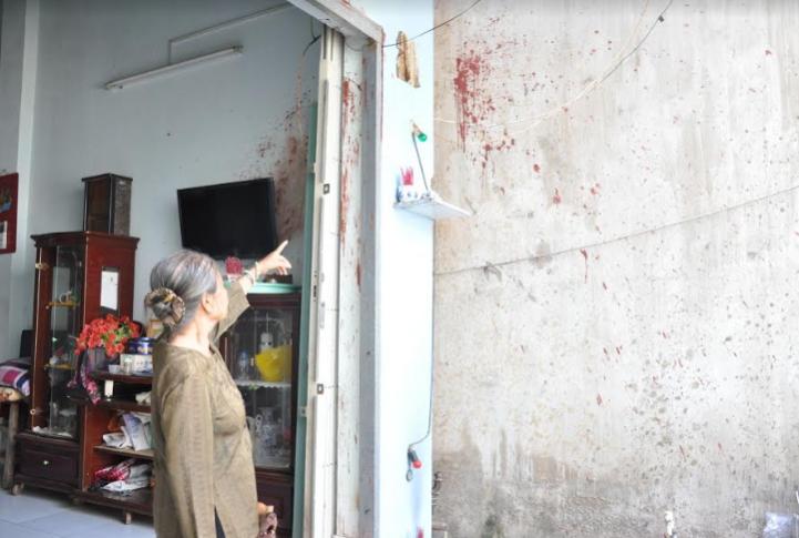 Căn nhà của mẹ bà Thanh bị các đối tượng lạ mặt tạt sơn, ném gạch đá