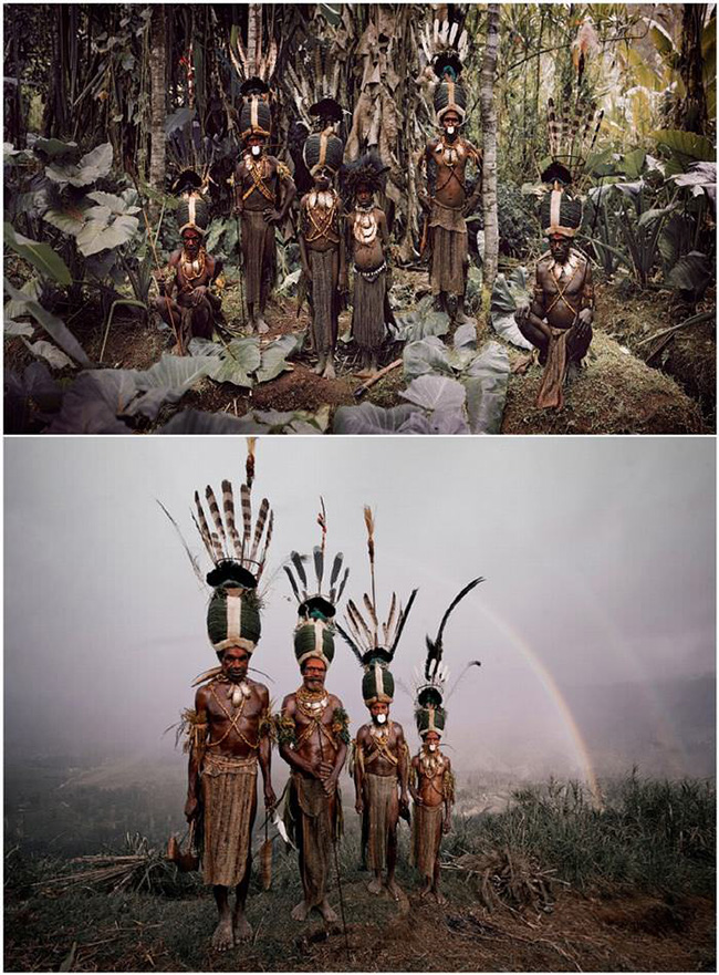 Huli - Papua New Guinea: Những người Huli Wigmen vẽ mặt họ màu vàng, đỏ và trắng, kết hợp với những bộ tóc giả trang trí công phu và đeo những chiếc rìu trông rất đáng sợ.