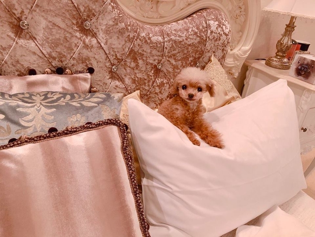 Người đẹp hiện sống độc thân cùng một chú chó cưng. Dù khoe ảnh cún cưng song người hâm mộ chỉ chú ý tới chiếc giường ngủ có thiết kế lộng lẫy, xa hoa như một nữ hoàng của Kirara.