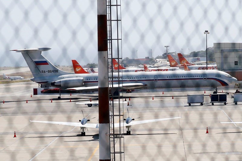 Máy bay mang cờ Nga tại sân bay Simon Bolivar ở Caracas, Venezuela. Ảnh: REUTERS