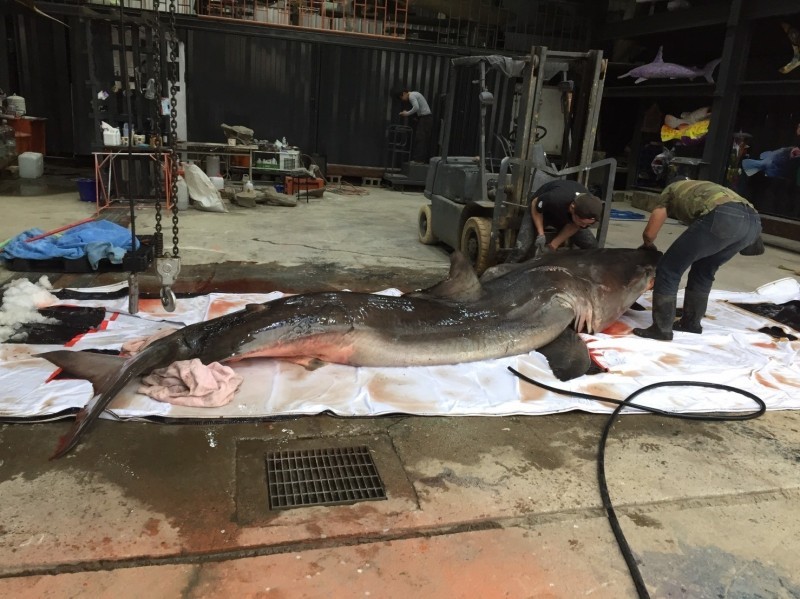 Con cá mập nặng hơn 1 tấn đang mang thai khi bị bắt ở ngoài khơi Đài Loan.