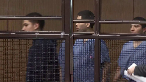 Từ trái sang: các nghi phạm Christian Reyes, Jesus Morales và Andrew Bran tại tòa án thành phố San Fernando, bang California hôm 25/3. Ảnh: KTLA
