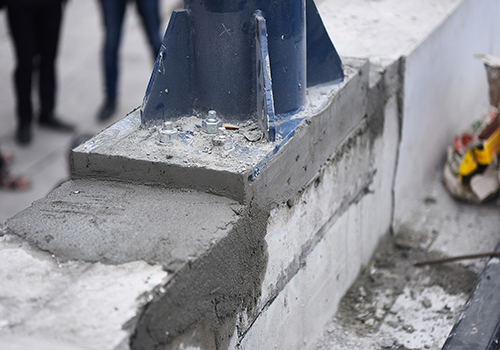 Nhà thầu đã trám vá các nét nứt do khoan thi công mái che thang cuốn. Ảnh: Giang Huy.