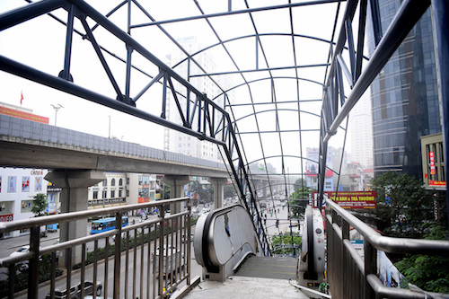 Bên ngoài một số nhà ga, thang cuốn đang được lắp đặt mái che. Đây là hạng mục được bổ sung ngoài thiết kế trước đây.