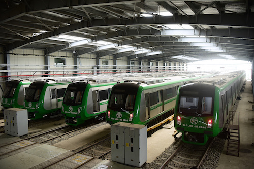 13 đoàn tàu hoạt động trên tuyến Cát Linh - Hà Đông tập kết tại khu Depot. Theo Ban quản lý dự án, chỉ còn 1% hạng mục cần xây dựng, công trình này phấn đấu nghiệm thu trong tháng 4.