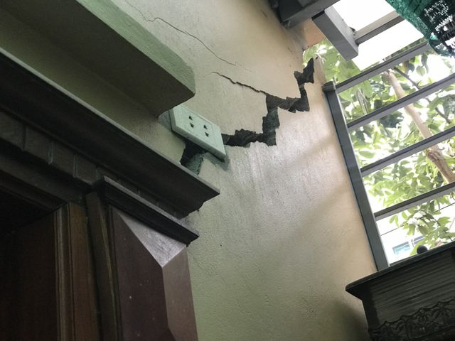 Bậc tam cấp, móng nhà bị trơ ra, nứt nẻ sau khi bị sụt lún