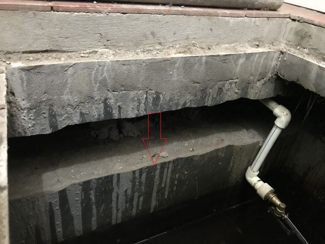 Bể nước của gia đình ông Bưởi bị sụt lún, tụt hẳn xuống dưới