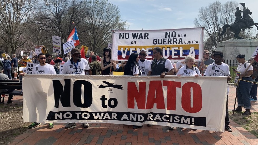 Trong một tuyên bố, Ủy ban Chỉ đạo Vận động Quốc gia, một liên minh của các nhà hoạt động đại diện cho hàng chục phong trào vì hòa bình, cho biết cuộc biểu tình này nhằm bày tỏ “sự phản đối qui mô lớn đối với NATO, các cuộc chiến tranh, chủ nghĩa phân biệt chủng tộc và sự gây hấn của Mỹ chống lại Venezuela”.Đoàn người biểu tình đã tập trung tại Quảng trường Lafayette bên ngoài khuôn viên Nhà Trắng, sau đó tuần hành tới trụ sở Quĩ Tiền tệ Quốc tế (IMF), Ngân hàng Thế giới (WB), Tổ chức các nước châu Mỹ (OAS) và trụ sở Cơ quan Hải quan và Bảo vệ Biên giới.