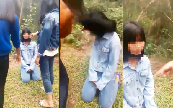 Sự việc xảy ra chiều 31-3, khi Tr. cùng 5 nữ sinh Trường THCS Diễn Kim đi chơi thì bắt gặp Th. ở một bãi lau gần biển. Do có mâu thuẫn từ trước, một nữ sinh trong nhóm Tr. đã yêu cầu Th. quỳ xuống "nói chuyện".