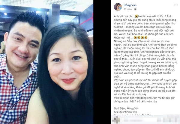 NS Hồng Vân kêu gọi giới nghệ sĩ chung tay lo hậu sự cho NS Anh Vũ.