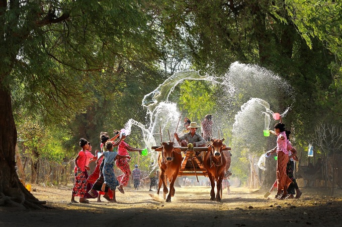 Tết té nước Thingyan của Myanmar diễn ra từ 13 đến 16/4, được coi là khoảng thời gian nóng nhất trong năm. Đây là một trong những ngày lễ quan trọng nhất xứ sở chùa tháp. Theo truyền thống, mỗi ngày người dân sẽ nấu một loại nước thơm khác nhau để trong nhà. Ảnh: Discoverydmc.