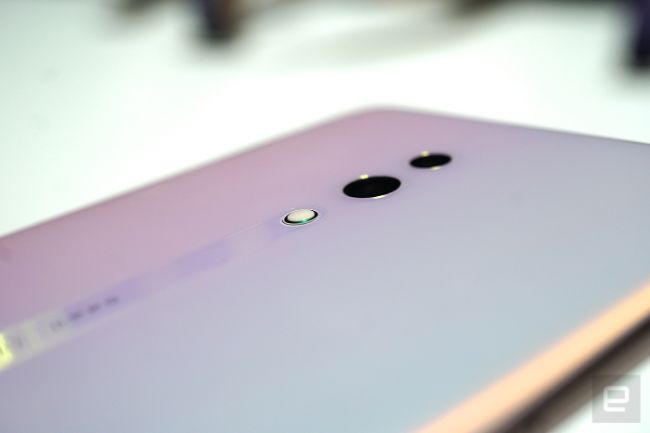 Phần phía trên của máy, nơi chứa cụm camera selfie bật lên chỉ có chứa lỗ nhỏ, có vẻ cho loa thoại.