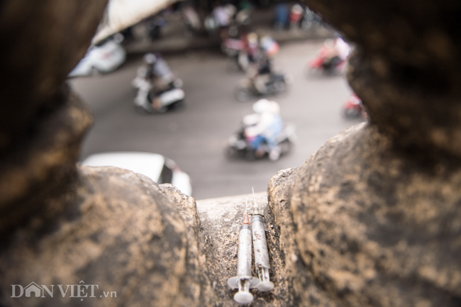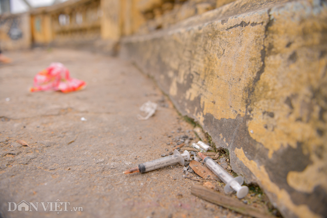 Các bơm kim tiêm thường xuyên xuất hiện tại khu vực này, gây nguy hiểm cho nhiều người và các du khách khi tới tham quan cầu Long Biên.