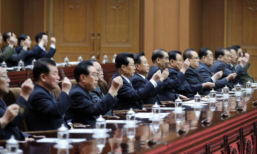 Quan chức tham gia phiên họp Hội đồng Nhân dân Tối cao Triều Tiên hôm 11/4. Ảnh: KCNA.