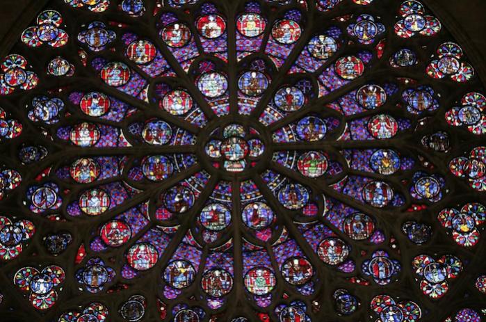 Các cửa sổ hoa hồng của nhà thờ Đức Bà Paris từ thế kỷ 12-13 còn nguyên vẹn sau vụ cháy. (Ảnh: Twitter/ BFM Paris)