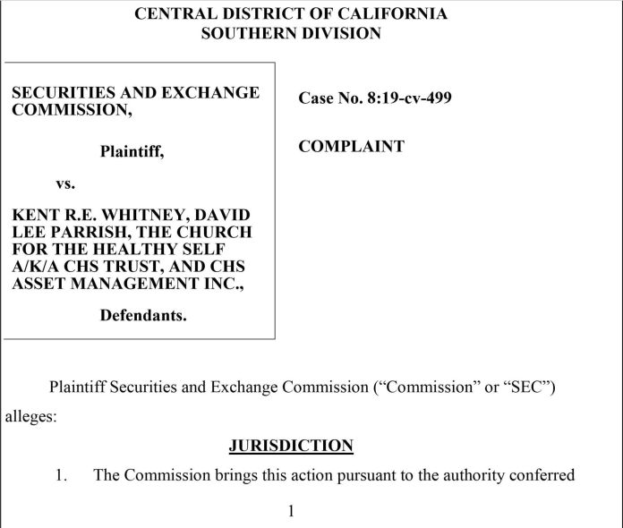 Hồ sơ SEC nói rằng các bị cáo Kent R.E. Whitney và David Lee Parrish, cả hai đều là mục sư qua mạng internet (ordained minister online), đang điều hành cả CHS và CHS Asset Management Inc.