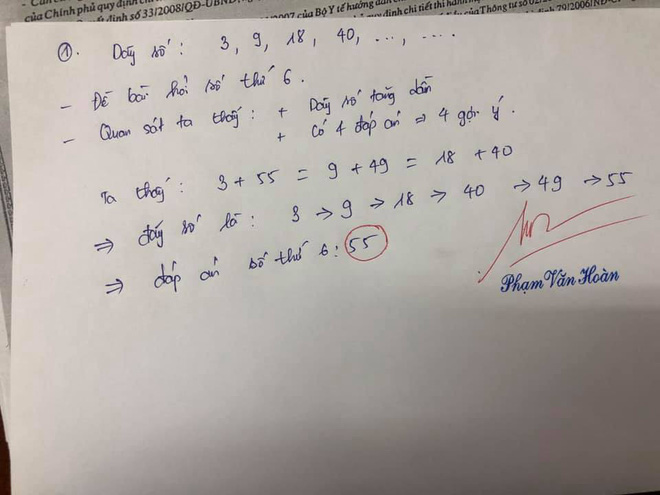 Trong khi đó, thành viên Phạm Hoàn lại cẩn thận giải bài toán ra giấy rồi chụp màn hình chia sẻ. Tuy nhiên phần giải này cũng gây không ít tranh cãi vì sự bất hợp lý của nó.