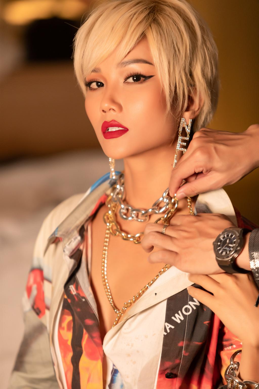 Khi khán giả còn chưa kịp làm quen với kiểu tóc hair bob mô phỏng hình tượng nữ minh tinh Mary Louise Brooks, H’Hen Niê đã thay đổi phong cách mang hơi hướng Edgy Hardcore.