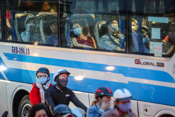 Đứng bên ngã tư đường Nguyễn Hữu Trí, anh Trần Hoàng Lâm bế con gái cùng vợ đợi người thân để về quê nghỉ lễ. "Tôi mới làm xong ca chiều nên giờ này, cả nhà cùng nhau về Trà Vinh cho khoẻ. Nếu đường không kẹt, chắc 21h là tới nhà thôi", anh nói.