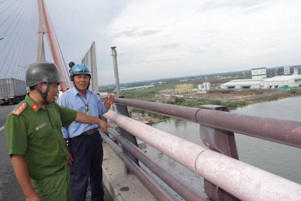 Đại úy Nhựt tại hiện trường một vụ cứu người nhảy cầu Cần Thơ ẢNH: MAI TRÂM