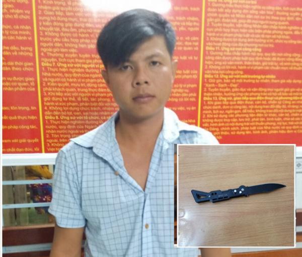 Nghi phạm Giàu và con dao (ảnh nhỏ) là hung khí gây án