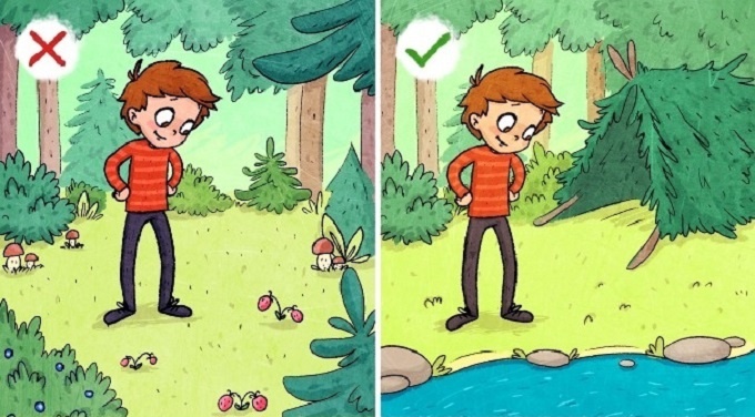 Bạn có thể đã nghe nói rằng điều đầu tiên cần làm khi bị lạc ở nơi hoang dã là tìm một ít thức ăn. Điều này không hoàn toàn chính xác. Một người khỏe mạnh có thể sống mà không cần thức ăn trong thời gian khá dài, lên đến 6 tuần. Tìm nguồn nước và tự dựng lên một nơi trú ẩn để tránh thời tiết khắc nghiệt mới là ưu tiên hàng đầu.