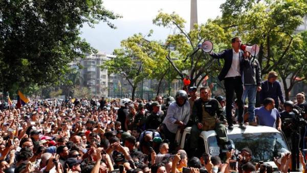Hàng chục ngàn người đã tuần hành tại Caracas, đụng độ với cảnh sát để ủng hộ Guaido. Một chiếc xe bọc thép của quân đội chính phủ đã đâm vào những người biểu tình.