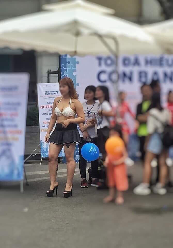 Mới đây, các diễn đàn mạng xã hội đua nhau truyền tay hình ảnh một cô gái mặc thiếu vải trên phố đi bộ. Giữa chốn đông người, cô gái vẫn hồn nhiên dạo phố dù chỉ mặc nội y trắng kết hợp với váy ngắn để hở phần lớn da thịt.