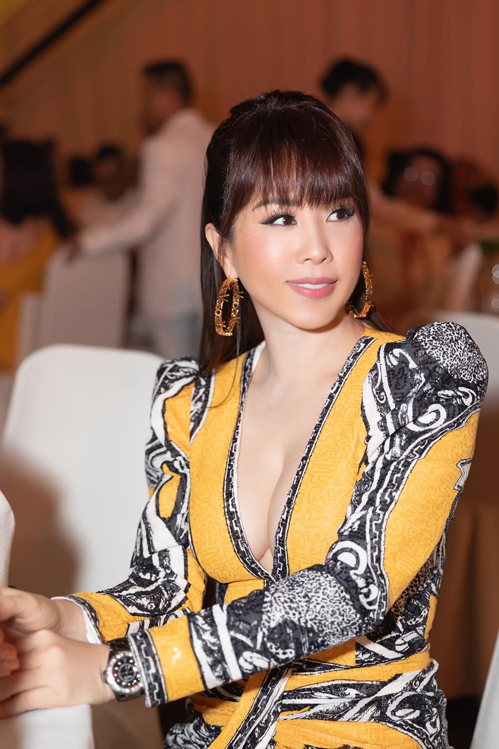Bà mẹ 3 con hội ngộ đồng nghiệp thân thiết Đàm Vĩnh Hưng. Thu Hoài tự tin khoe vẻ sexy khi diện đầm xẻ sâu của NTK Công Trí, kết hợp với những phụ kiện hàng hiệu đầy tinh tế.