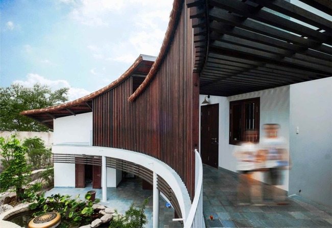 Thiết kế gỗ dọc hành lang mang lại cảm giác truyền thống, cổ kính