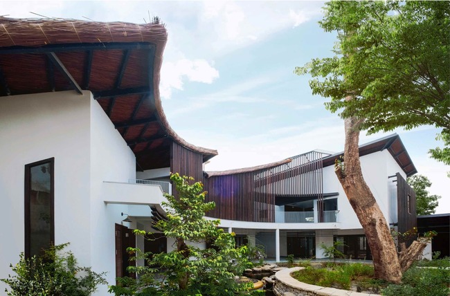 Về cấu trúc tòa nhà, các phòng chức năng được đặt giữa các không gian mở: Hành lang cong lớn, sân vườn, sân trong và sảnh được bố trí linh hoạt.