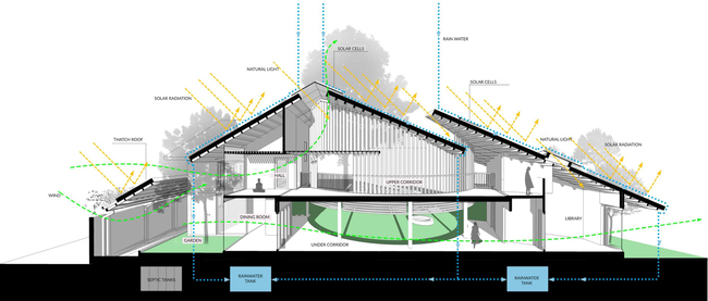 Thiết kế độc đáo tận dụng tối đa năng lượng mặt trời và lượng nước mưa để phục vụ sinh hoạt.