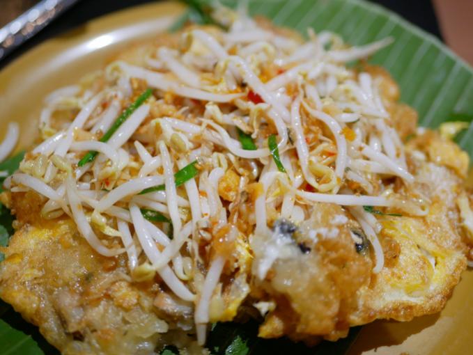 Sự kết hợp thú vị giữa trứng và hàu đã làm nên món trứng chiên hàu hấp dẫn. Đầu bếp thường phủ hàu tươi lên trứng tráng trước khi ăn thay vì tráng chung cùng trứng. Hàu dùng để chế biến luôn là loại tươi. Món ăn được chế biến trực tiếp khi có khách yêu cầu nên bạn còn được dịp quan sát các đầu bếp Thái trổ tài. Bạn đừng quên cho thêm chút nước sốt tỏi ớt để tăng hương vị. Suất ăn thường có giá 70 baht (hơn 50.000 đồng). Ảnh: Shutterstock/Ole_ONX.