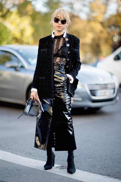 8. Biến bra thành một phần của bộ trang phục: Bộ đồ tông trắng đen của tín đồ trên sẽ trở nên nhạt nḥa, kém hấp dẫn hơn nếu không có phần áo bra tiệp màu với dây nịt, áo khoác và giày.