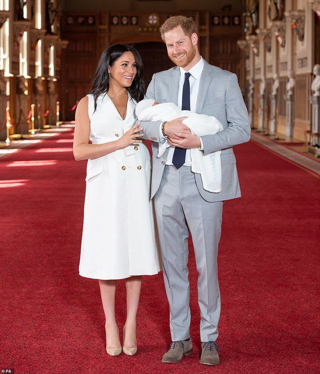Trong khi vợ chồng Hoàng tử Anh Harry - Meghan hạnh phúc mỉm cười trả lời phỏng vấn của báo chí, còn em bé Sussex vẫn ngủ say trong vòng tay người bố, sau khi lần xuất hiện con trai vợ chồng Hoàng tử Harry trước công chúng, hai ngày khi chào đời. Trước đó, Nữ hoàng Anh Elizabeth II đã đội mưa tới thăm chắt tại lâu đài Windsor.