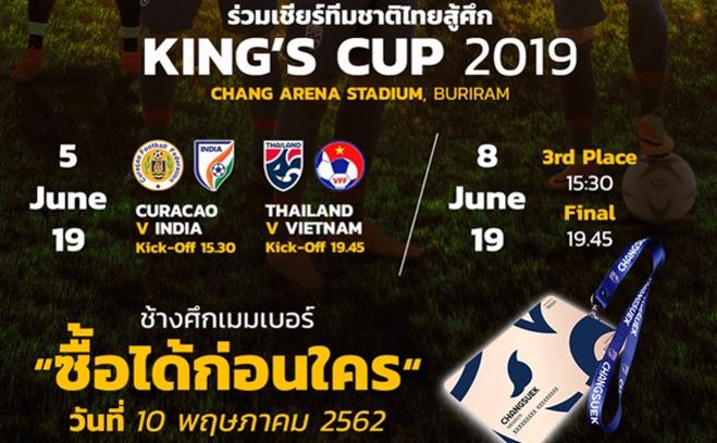 Vào lúc 14h00 hôm nay, lễ bốc thăm chia cặp đấu tại King's Cup 2019 đã diễn ra tại khách sạn Al Mirez (thủ đô Bangkok, Thái Lan). Theo đó, Việt Nam sẽ đụng độ đội chủ nhà Thái Lan, trận đấu diễn ra lúc 19h45 ngày 5/6 theo giờ địa phương. Trước đó vào lúc 15h30, Curacao sẽ đụng độ Ấn Độ.
